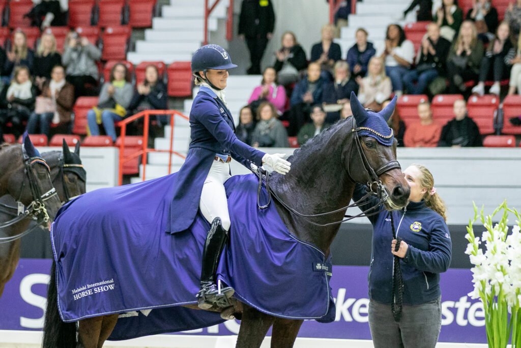 Senioreiden hallimestari ja Suomen mestaruuden pronssimitalisti Maria Pyykönen sijoittui parhaana suomalaisena kolmanneksi hevosellaan Furst Wild S:llä.