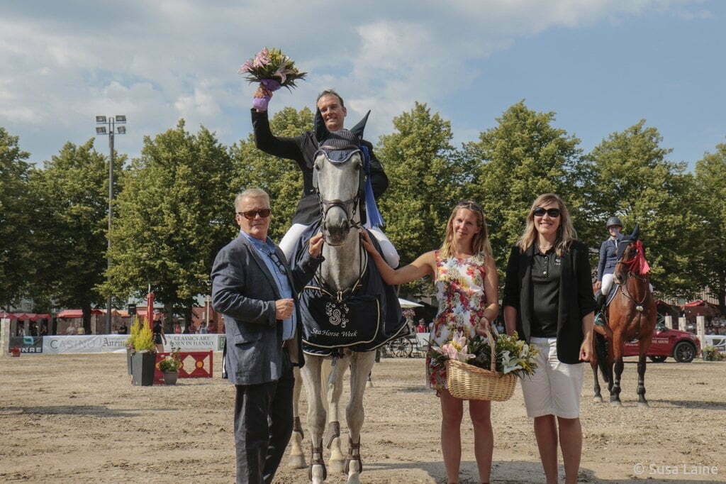 Hanko Grand Prix Presented by Land Rover & Helsinki Horse Show voittaja Henrikki Pajulahti ja Clara De Bergerac.