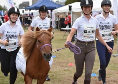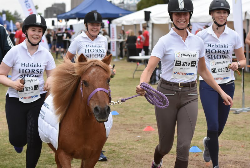 Helsinki Horse Show osallistui Helsingin RunFestiin 30.8. HIHS Runs Green -joukkueella. Viisihenkisen ratsastajiksi pukeutuneen joukkueen viestikapulana toimi Kotikulman tallin Blondi-poni. Blondi sai hurjasti kannustusta ja ravimuistot kumpusivat mieleen, kun ponin vauhti vain kiihtyi matkan edetessä.