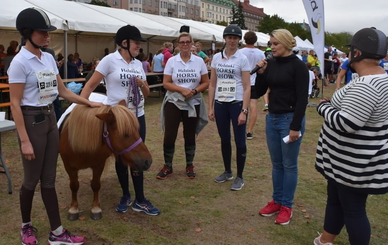 RunFest oli hyväntuulinen työhyvinvointi- ja hyväntekeväisyystapahtuma, jossa kaikilla oli leveä hymy huulilla. Itse viesti ei ollut kilpailu vaan hauskan tapahtuman liikuntaosuus. Kilpailuakin käytiin, koska palkintoja jaettiin parhaalle viestikapulalle, vaatetukselle tai huikeimmille kannatusjoukoille. Helsinki Horse Show’n joukkue voittikin joukkueasukisan.
