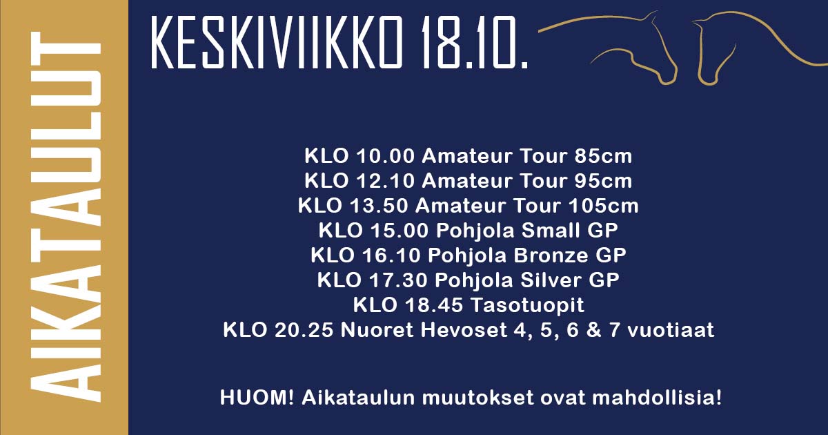 Keskiviikon aikatauluHUOM! Aikataulut ovat alustavia ja ajantasaisesti päivittyvät luokka-aikataulut löytyvät Longines Timingista