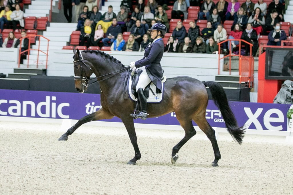 ”Rakastan todella Helsinkiä, kisa on aina sopinut meille. Täällä on todella hyvä kilpailla vähän kokemattomilla Grand Prix -hevosilla”, Jeanna Högberg kiittelee.