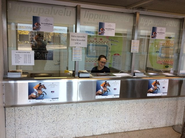 Akkreditoinnissa loistavat palveluhenkiset ja kielitaitoiset henkilöt. Akkreditoinnissa luovutetaan toimihenkilöille, ratsastajille ja muille kulkulupaa tarvitseville tahoille oikea kulkulupa, jolla liikutaan kilpailualueella HIHS:in aikana. Lue tarkempi kuvaus.
