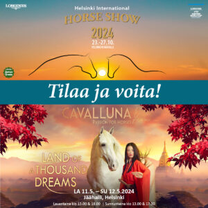 Kaikkien Horse Show’n uutiskirjeen uusien tilaajien kesken järjestetään upea lippuarvonta. Pääpalkintona jaetaan neljä lippua hevostapahtumiin, kaksi Cavallunan lippua sunnuntaille 12.5. ja kaksi lippua Helsinki Horse Show’n Lauantai illan huumaa -näytökseen 26.10. Lisäksi arvomme useampia Cavallunan lippuja.